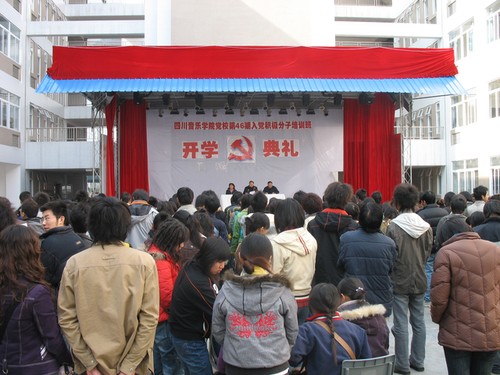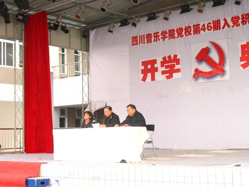 12月14日下午13:00,四川音乐学院党校第46期入党积极分子培训班开学典礼在我院内廷广场隆重举行。四川音乐学院党委副书记彭建辉、我院党总支书记兼行政副院长鲁道甫、学生处安楠老师及我院师生344名新学员参加了开学典礼。