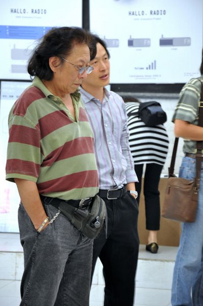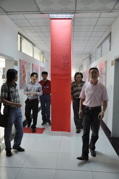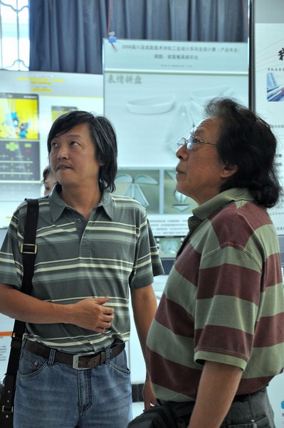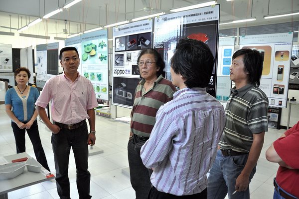 在工业设计系副主任郑伯森副教授的解说下 马一平院长、杨为渝副院长、周靖明副院长参观工业设计系2009造就毕业展