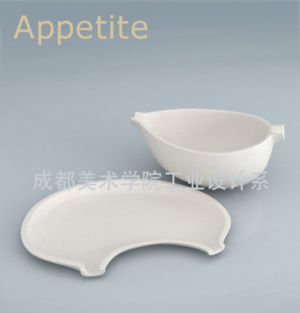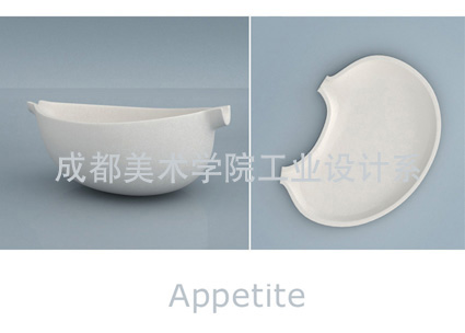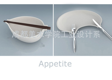 突然有一天,就想到为什么不把这个想法设计成一套餐具呢?以“胃”为概念;“胃”的形态作餐具的基本形,而“胃”的上下连通口是摆放餐具的地方,正如我们是使用餐具让食物到我们的胃里的。