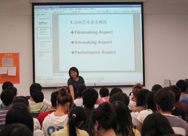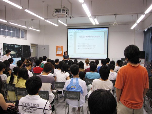 2009年6月15日,美国著名动画专家、动画策展人Sharon Wu到我院进行学术交流访问。美术学院院长马一平教授携动画系教师高中立,王翔等,热情接待了来自大洋彼岸的客人。双方就学院发展、学术科研等情况进行了交流。会谈结束后,Sharon Wu到我院动画系进行参观访问,观看了动画系毕业生作品展,并与毕业生进行交谈。6月16日下午,Sharon Wu应邀在动画系进行了题为《美国好莱坞动画制作与运营模式》的专题讲座,受到学生的热烈欢迎。
