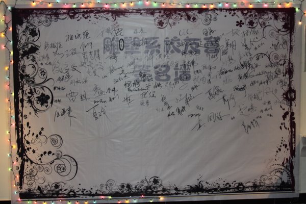 为了新老校友能够更好的交流,到会的每个校友和老师都通过抽签来坐;每个校友都做了简短的自我介绍,使得大家能够相互了解;在大家一致要求下,系主任许庾岭老师高歌了一曲,在他高亢的歌声影响下,其他的学生都一起唱了起来,将会场气氛推向高潮;大家在委婉抒情的音乐里,一起观看了雕塑系从成立时到现在的学生、老师一起学生、生活的照片,许老师为大家一一做了介绍;最后大家在美院大楼前拍了张“全家福”,以作纪念。