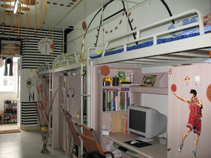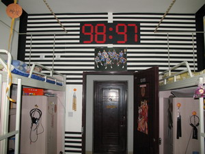 其中男生12栋515,516寝室,和女生16栋521,525和531寝室最为突出,充分利用自己的专业知识,精心打造自己的寝室,设计新颖,风格突出,形成了我们美院自己的寝室文化。