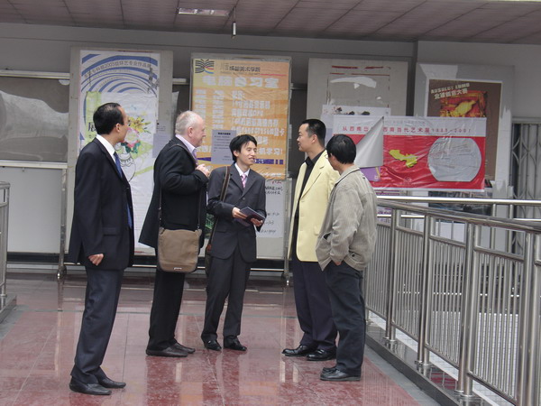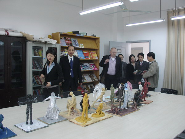 3月26日中午,英国文化协会创意产业部部长安德鲁 森尼尔、FOCI英国创意产业论坛主席、伯恩斯。欧文创意产业顾问公司总监及投资人约瑟芬。伯思斯女生、英国驻重庆总领事馆文化教育处艺术经理、翻译曾臻及省文化厅领导一行7人到我院参观学习,在院长办公室马一平院长和英国来的专家进行了 亲切的交谈。英国专家对我院的发展和取得的优秀成果不时竖起大拇指高度赞赏,并希望与我院长期交流合作。英国专家还参观了我院卡通艺术系学生作品。卡通艺术系主任陈昌柱教授陪同在坐。