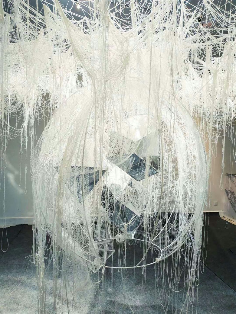作品简介:现在自媒体时代,越来越多的人通过朋友圈,直播等各种软件平台向人展示自己的一种私生活,这是一种想暴露又怕别人看到的一种复杂心理,却满足了一些偷窥者的心理需求,人的心理或多或少都想要去窥探别人的生活,或许是为了对比,或许是为了满足其他的一些心理需求,这样一种心理或许是病态的,扭曲的。可窥视别人的世界最终看到的是什么呢?作品采用内外的结构来表示偷窥的环境,用丝网和线结构暗示现实的束缚和一种复杂的情绪,内体的镜面结构暗示着被偷窥者,最终反映偷窥者看到的是自己。整个作品的意义是人们在通过层层的束缚之后,了解到自己的内心世界,都能够看清自己并且反思自己。