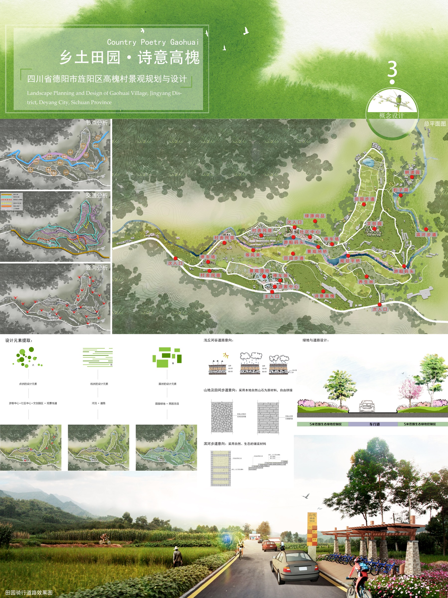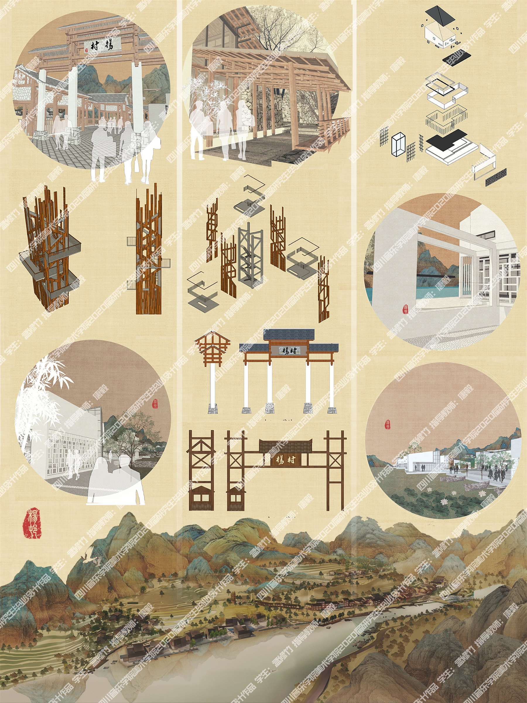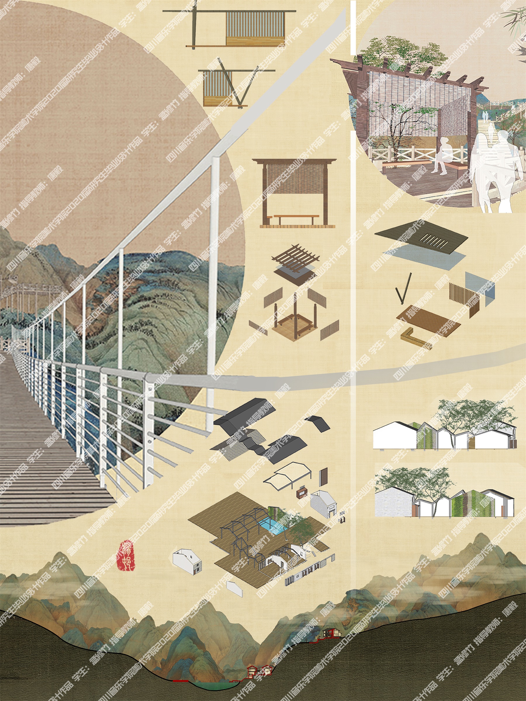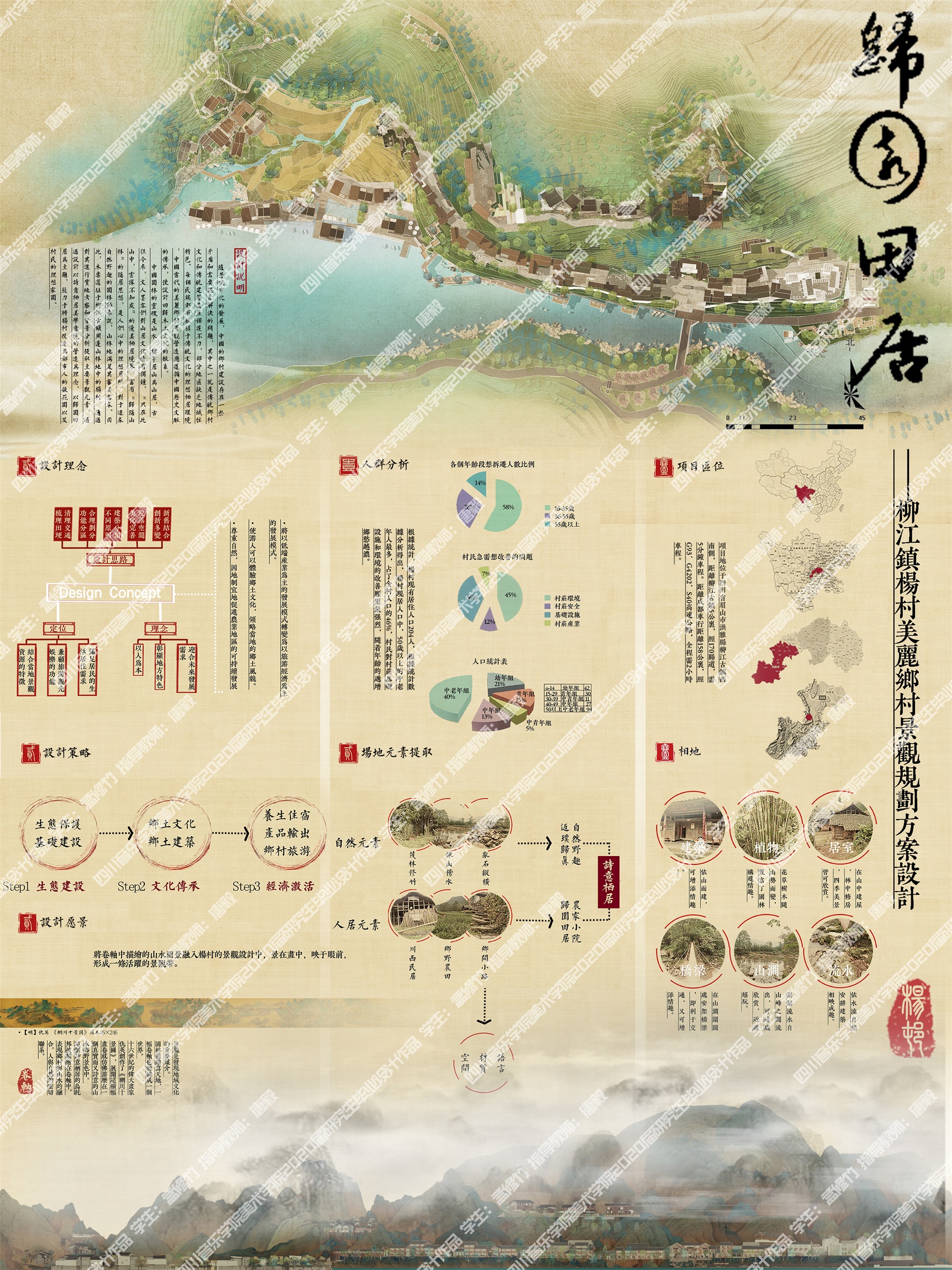 马海霞,马子淇,吴稣欣,孟修竹四位同学,对乡村振兴课题展开了深入研究,分别以“言、叶、知、故、里”、“西蜀旌城”“乡土的诗意”和“中国山水画”为灵感,提出的景观方案,展现了乡村的美丽风光,以及在新时期条件下,如何让人与自然的和谐共生,让乡村比以往更加焕发活力。