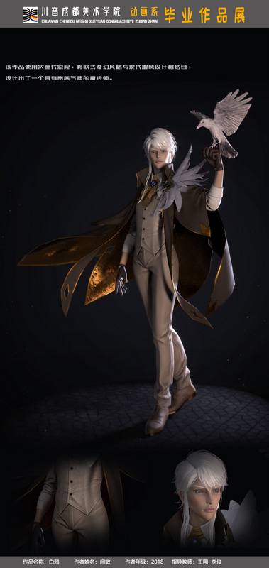 2、闫敏 作品《白鸦》该作品使用次世代流程,将欧式奇幻风格与现代服装设计相结合,设计出了一个具有贵族气质的魔法师。