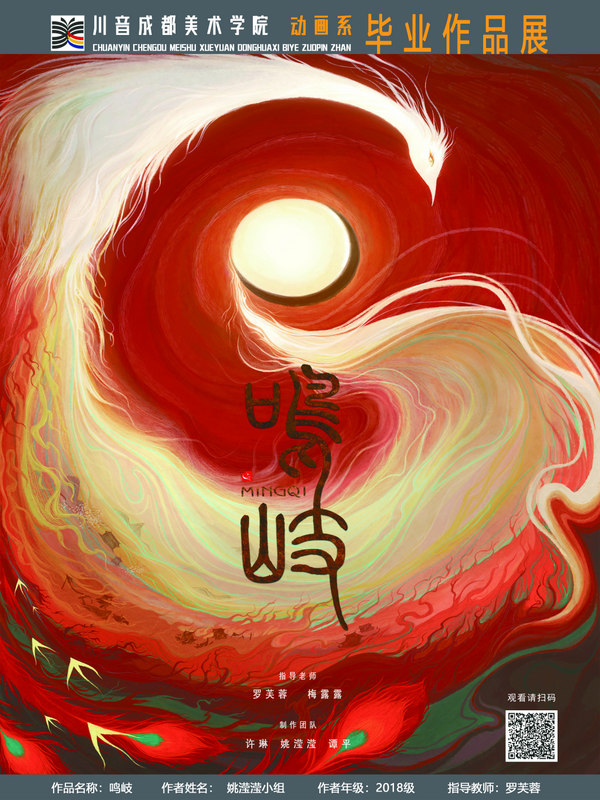 3、姚莹莹小组 指导教师:罗芙蓉、梅露露、蔡媛媛 作品《鸣岐》在画面上,我们的作品以岩彩作为风格基础,市面上岩彩是一种手绘方式,电脑绘制的岩彩风格大多是插画类的,而我们将其制作成动画形式。在内容上,我们的作品是一只凤凰以一个旅行者的身份来经历的朝代的更替,通过主观的视角带我们了解中国的传统文化,在后期的凤凰通过涅槃从而得到了更好的发展,也有更深层次的剧情内容推进。该作品将画面与内容的结合都使用的是中国传统文化的元素作为基础,既有中国传统元素独有的美感,也能激发观众的民族自豪感。