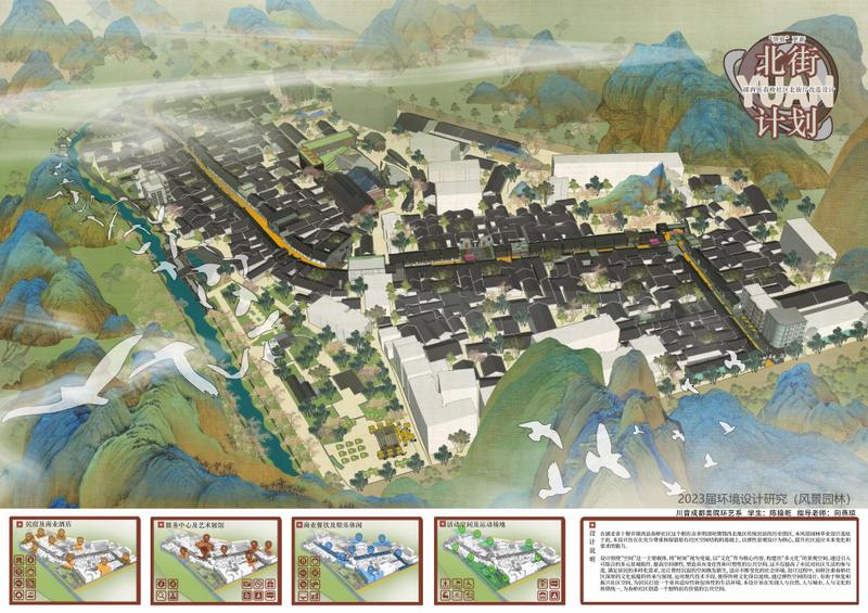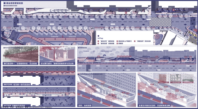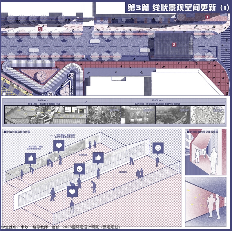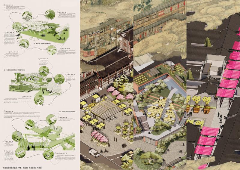 作品简介:受城市建设影响,少城历史文化街区存在着街道立面消极、公共空间品质不佳等严峻问题,急需进行更新优化。近年来,艺术凭借其接触门槛低、操作性强、利于文化展示等突出优点而逐步介入城市景观空间之中,成为城市景观空间营造的重要手段。由此,艺术在少城历史文化街区景观更新中的介入策略成为此次项目探讨的重点所在。 本项目以商业后街、长发街片区为例,以运用艺术手段、传承历史文脉、丰富生活场景、营造和谐景观为设计目标,在艺术介入景观空间主题设定、艺术载入景观空间情景事件、艺术搭设景观空间交互平台三项主要策略的指导下实现艺术在商业后街、长发街片区景观空间中的有效介入,实现了街区景观环境的优化升级与街区艺术氛围的良好营造。